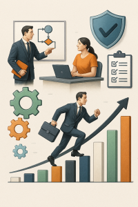 Contribuir al fortalecimiento institucional y empresarial mediante la gestión estratégica de proyectos, el diseño de sistemas de control interno, y la implementación de modelos de eficiencia y transparencia, con enfoque ágil, ético y orientado a resultados.